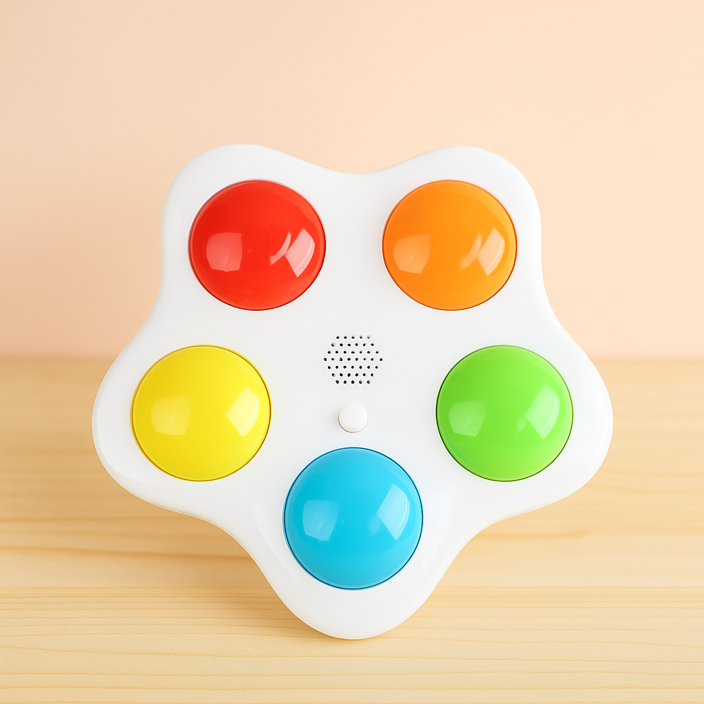 ColorBop Star es el juguete interactivo perfecto para estimular los sentidos y la coordinación. Con cinco botones de colores vibrantes que se iluminan y emiten sonidos divertidos al presionarlos, este dispositivo es ideal para desarrollar habilidades sensoriales, auditivas y motoras en niños pequeños.