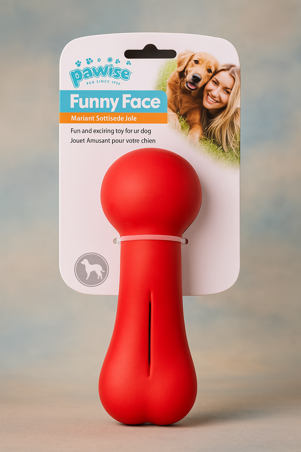 El Pawise Funny Face es un juguete interactivo y resistente diseñado para brindar horas de diversión a tu perro mientras estimula su instinto natural de juego. Su diseño ergonómico y forma única lo hacen fácil de agarrar, morder y lanzar, promoviendo la actividad física y el entretenimiento.