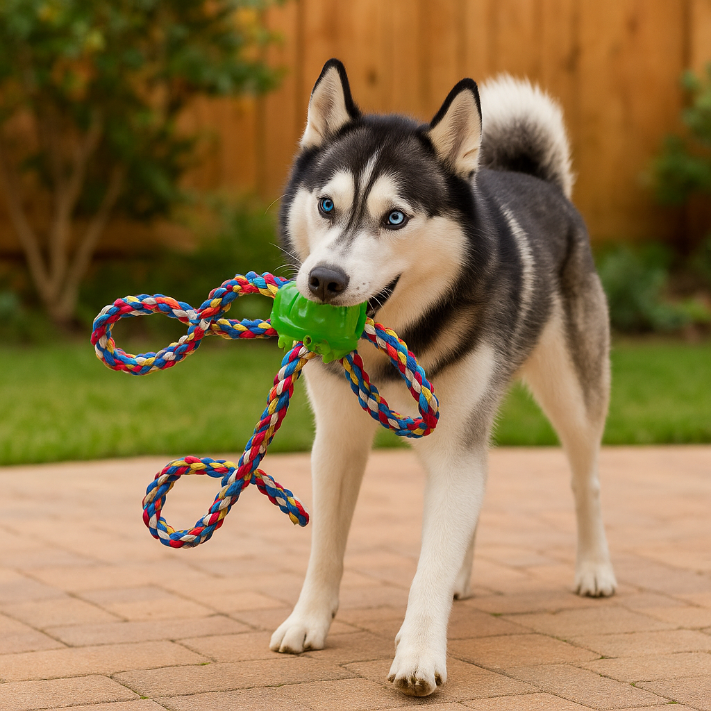 Perfecto para sesiones interactivas con su humano favorito o para entretenerse solo, RopeRush es ideal para perros con mucha energía y mordida fuerte.