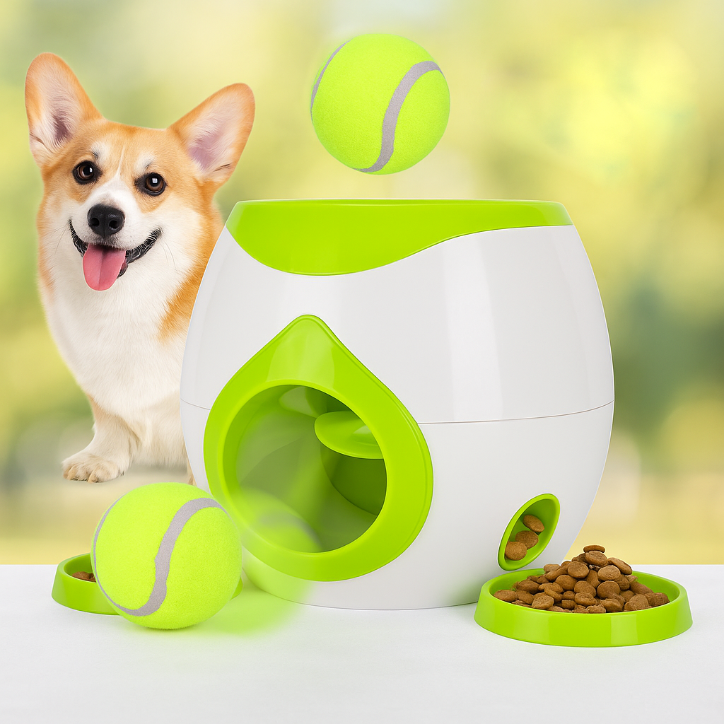 El SmartReward Feeder es mucho más que un dispensador de comida: es una herramienta interactiva diseñada para estimular física y mentalmente a tu perro. Este innovador juguete lanza pelotas automáticamente, y al ser devueltas correctamente por tu peludo, libera croquetas o snacks como recompensa, fomentando así el ejercicio, el enfoque y la obediencia de manera divertida.