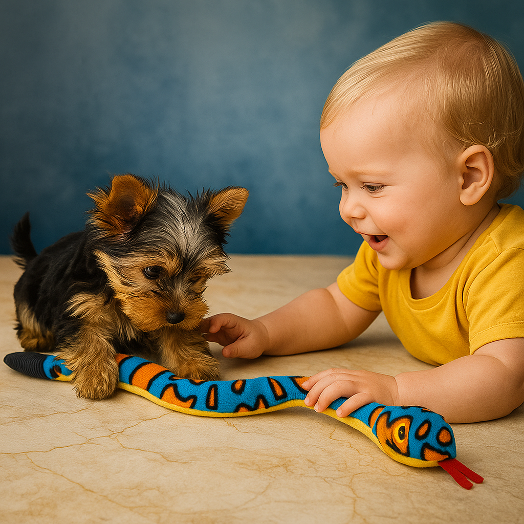 Con su diseño alargado, colores vibrantes y textura suave, SnakyFun es el juguete ideal para mantener a tu perrito entretenido por horas. Su forma de serpiente estimula el instinto natural de persecución y juego, mientras su cuerpo flexible permite sacudidas, mordidas y arrastres sin parar.