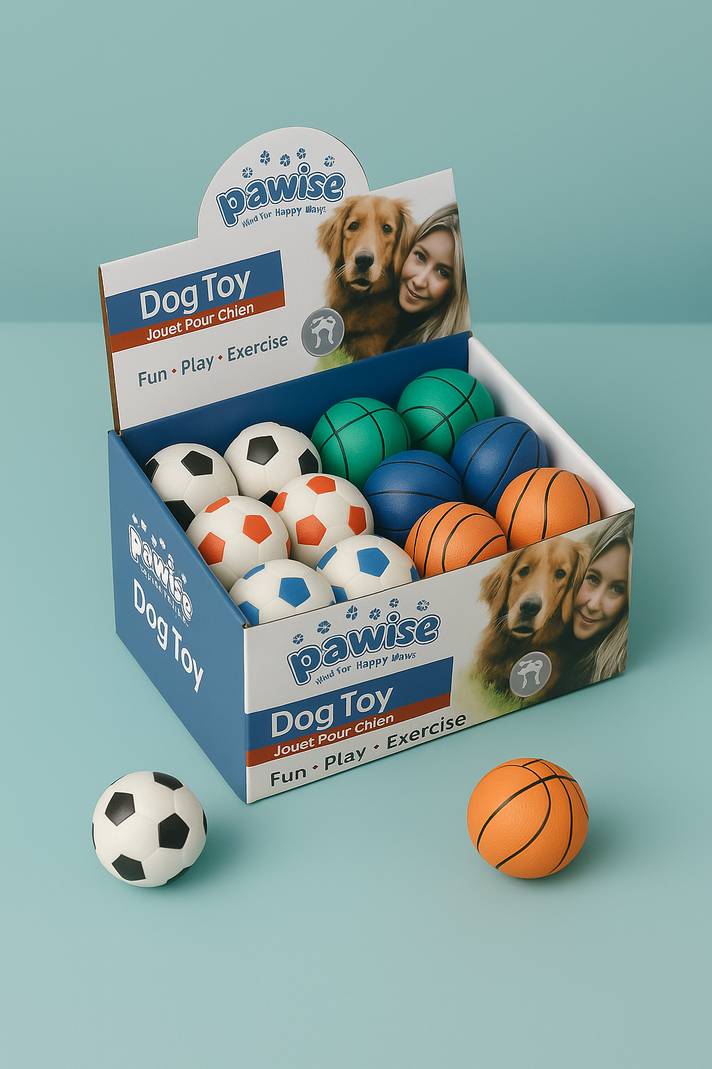 SportPaws es el set de pelotas perfecto para los perritos fanáticos del juego. Inspiradas en deportes como el fútbol, baloncesto, béisbol y más, estas pelotas están diseñadas con materiales resistentes y seguros, ideales para juegos de lanzar, buscar y morder.