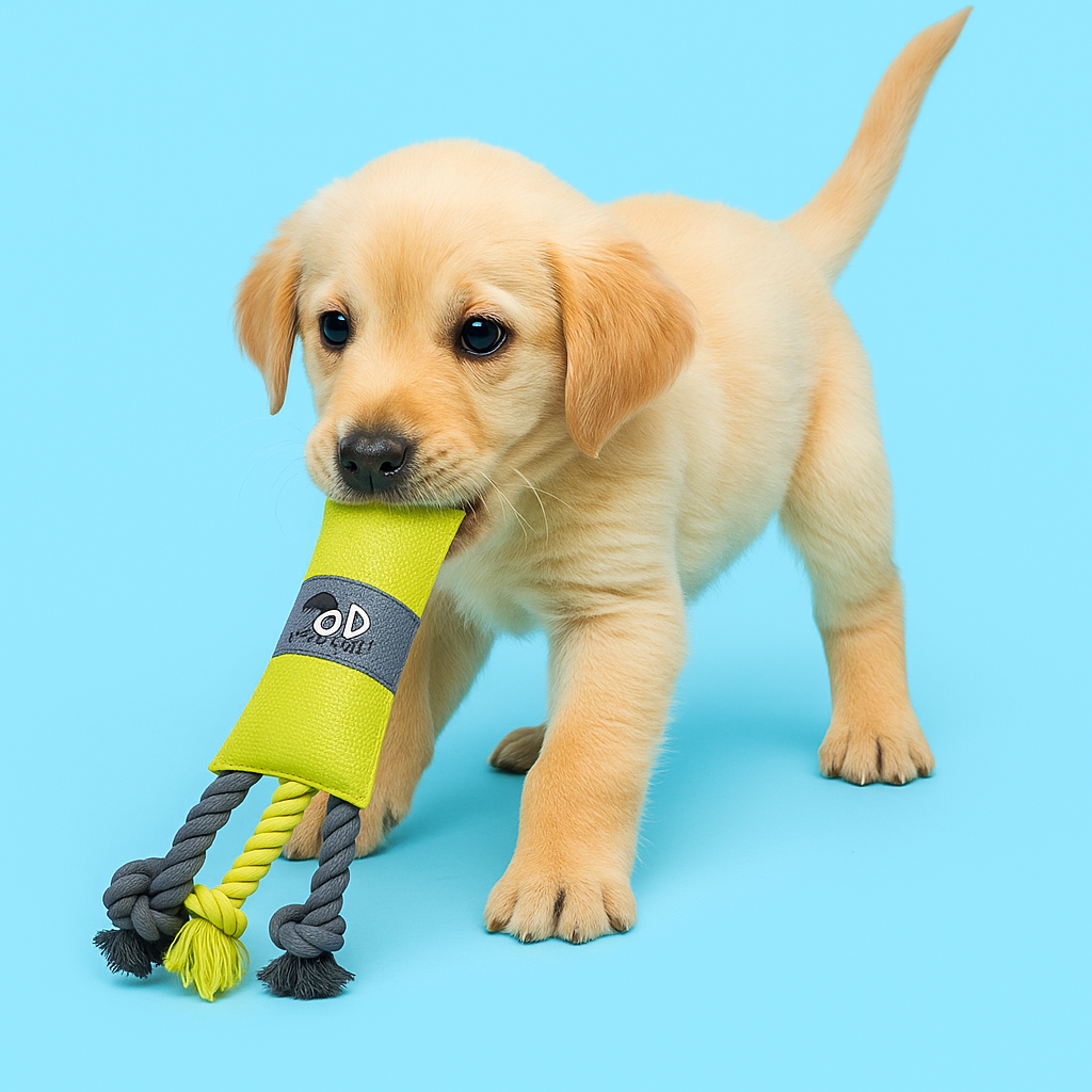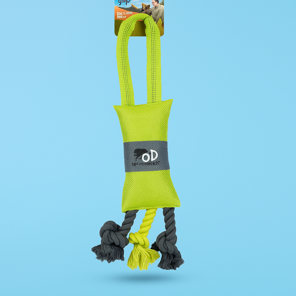 Diseñado para los perritos más enérgicos, TugTailer es el juguete perfecto para juegos de fuerza, mordidas y arrastres. Fabricado con materiales ultra resistentes, combina cuerda trenzada y una zona central acolchada para proteger los dientes y encías.